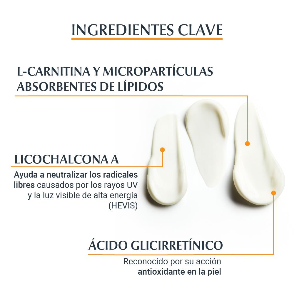 El Protector solar Eucerin Oil Control Toque Seco con Advanced Spectral Technology está diseñado para las necesidades específicas de la piel grasa y propensa al acné. Esta crema para el rostro proporciona protección de nivel superior contra los daños de la piel incluidos por el sol, ayuda a prevenir el fotoenvejecimiento y contiene una solución activa para mejorar el estado de la piel. Su fórmula contiene Licochalcona A, Ácido Glicirretínico y Carnitina para darle a la piel un acabado mate seco, inmediato y duradero por ocho horas. Además, posee un sistema de filtros solares UVA/UVB fotoestable, FPS 50+ y pigmentos de color que unificar el tono de la piel.