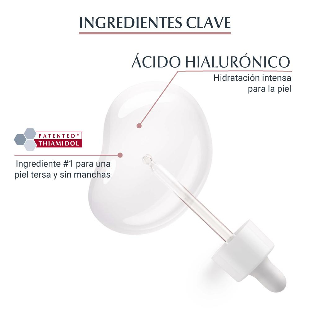 El Serum facial UltraLight Eucerin ANTI-PIGMENT contiene Thiamidol, que ayuda a reducir manchas y prevenir su reaparición, y brinda luminosidad a la piel. El Ácido Hialurónico y la Glicerina brindan hidratación y dejan la piel con un aspecto más suave. El serum tiene textura ultra-ligera de rápida absorción y brinda 8h anti-brillo.