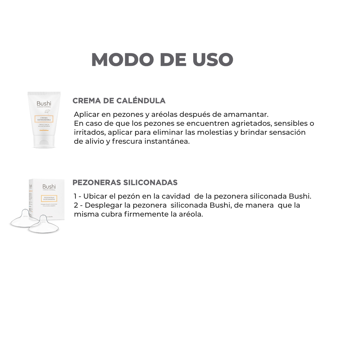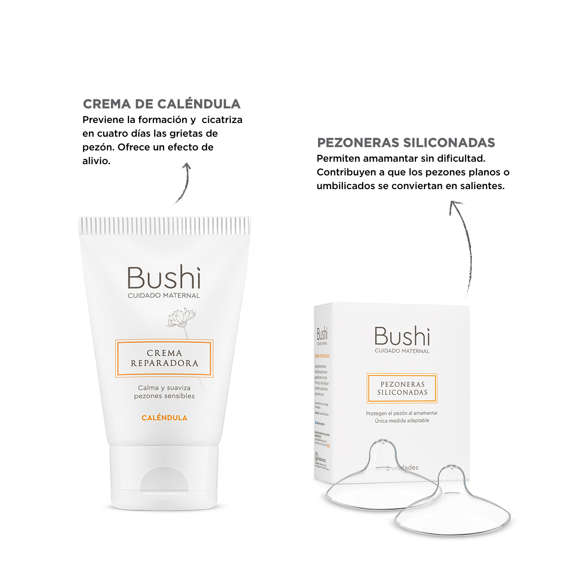 Bushi Combo Para Madres Crema Y Pezoneras X2
