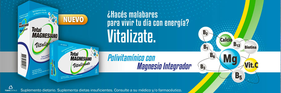 Y en Total Magnesiano Vitalizante es fundamental: Tiene el gran poder de sinergizar la acción de las demás vitaminas, integrándolas con un gran poder de acción.