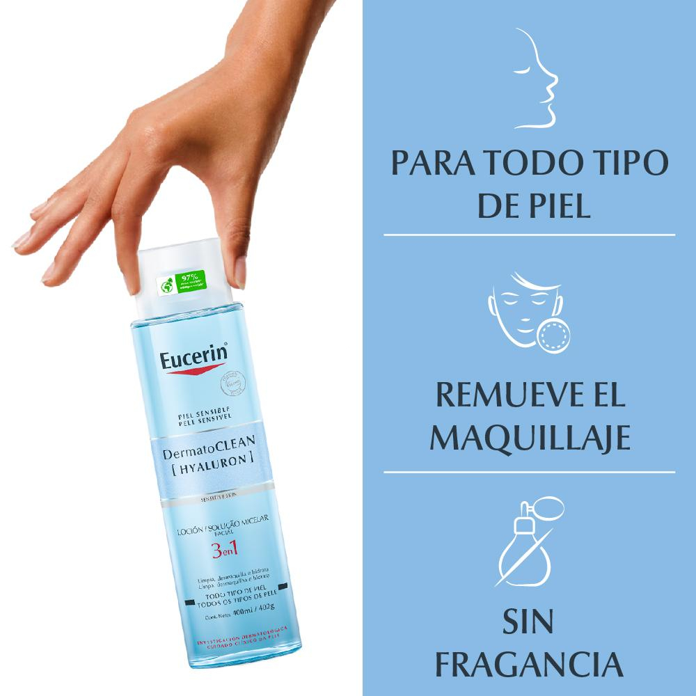 Loción micelar limpiadora 3 en 1 Eucerin DermatoCLEAN con Ácido Hialurónico