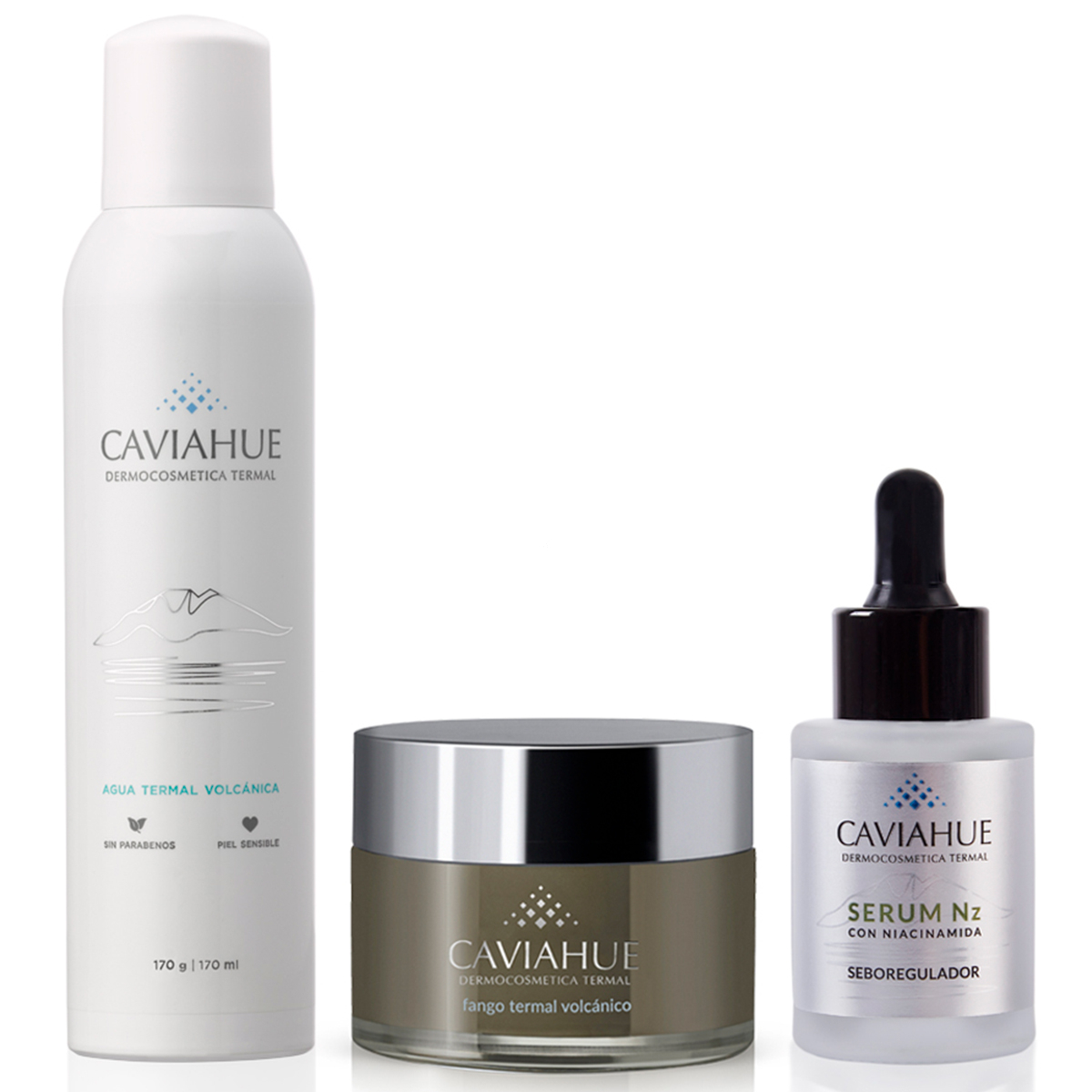 La Rutina Caviahue Termal Purificante Pieles Mixtas a Grasas está diseñada para pieles con imperfecciones. Su fórmula combina activos minerales y vegetales que desintoxican, calman e hidratan profundamente. El agua termal volcánica del Volcán Copahue actúa como base hidratante y regeneradora; la niacinamida al 10% junto con el zinc controla el exceso de sebo y reduce poros dilatados; y el fango termal enriquecido con arcillas y extractos botánicos purifica, exfolia y mejora la textura de la piel. Esta rutina es ideal para uso diario o como tratamiento detox semanal, dejando la piel visiblemente más limpia, uniforme y equilibrada.