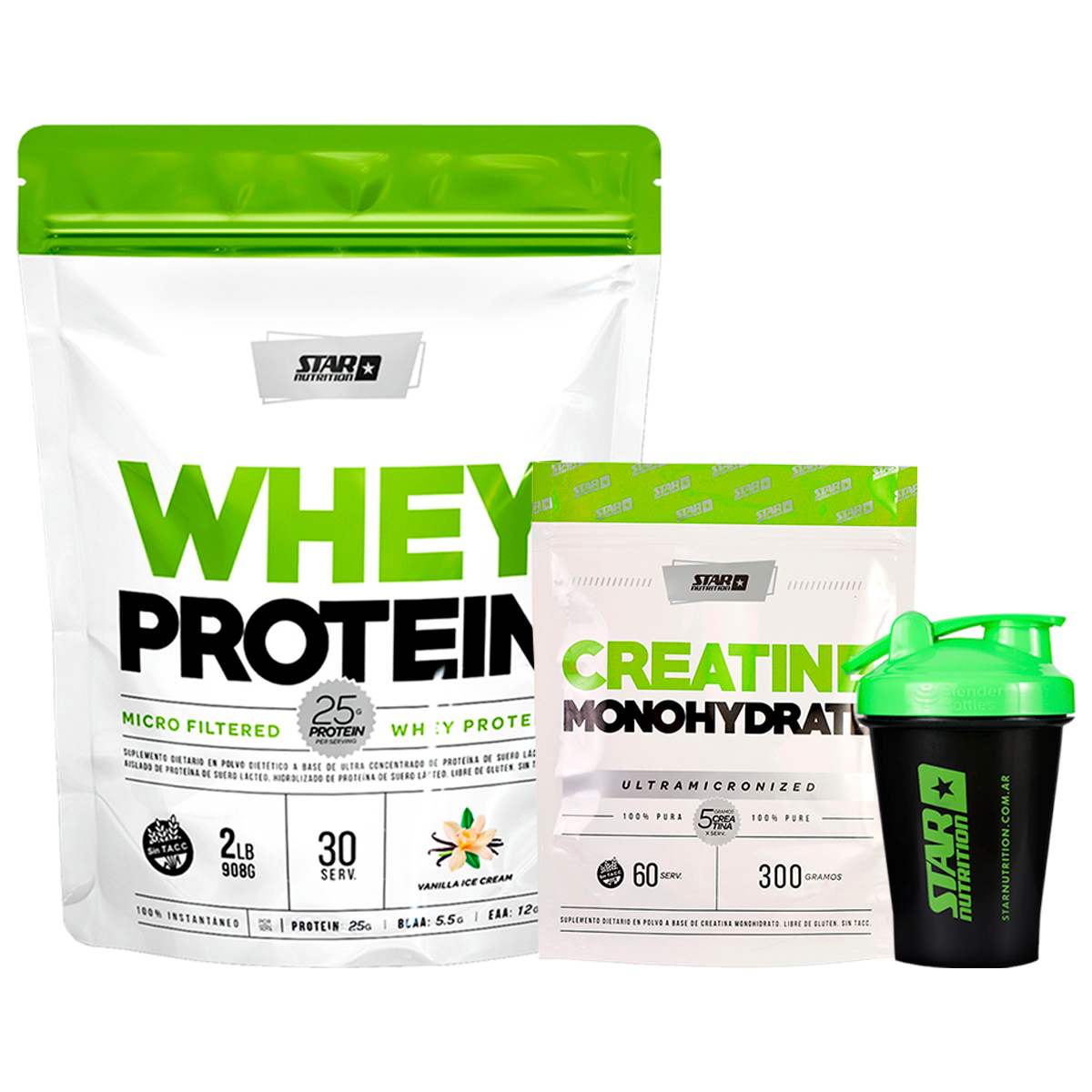 Combo Star Nutrition Whey Protein Vainilla + Creatina + Shaker