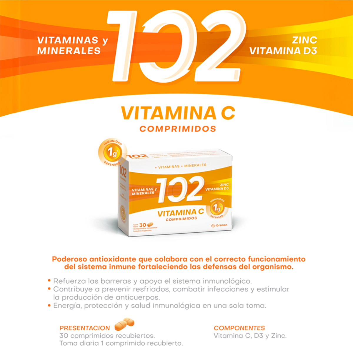 102 Plus Vitamina C Suplemento Dietario X 30 Comprimidos