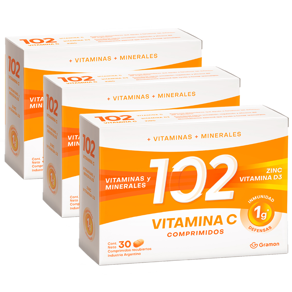 Pack 3 102 Vitamina C Suplemento Dietario X 30 Comprimidos