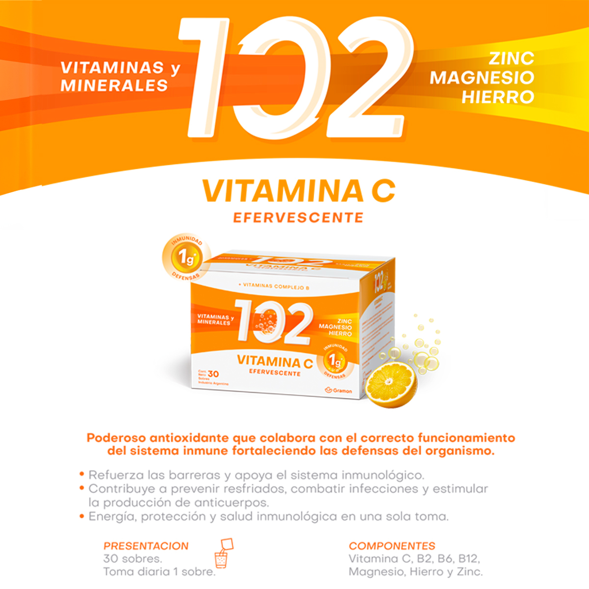 102 Plus Vitamina C Efervescente Suplemento X 30 Sobres