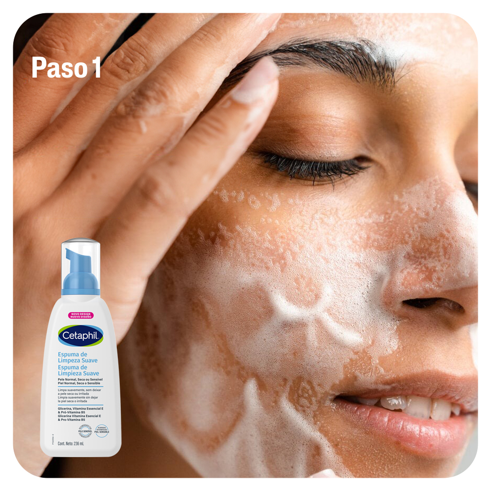 Cetaphil Espuma de Limpieza Suave: Ideal para todos! Mujeres y hombres con una piel normal a muy sensible, que desean limpiarse el rostro de forma suave. Un limpiador facial suave que elimina la suciedad, el aceite y el maquillaje sin esfuerzo. Espuma aireada que se enjuaga fácilmente.