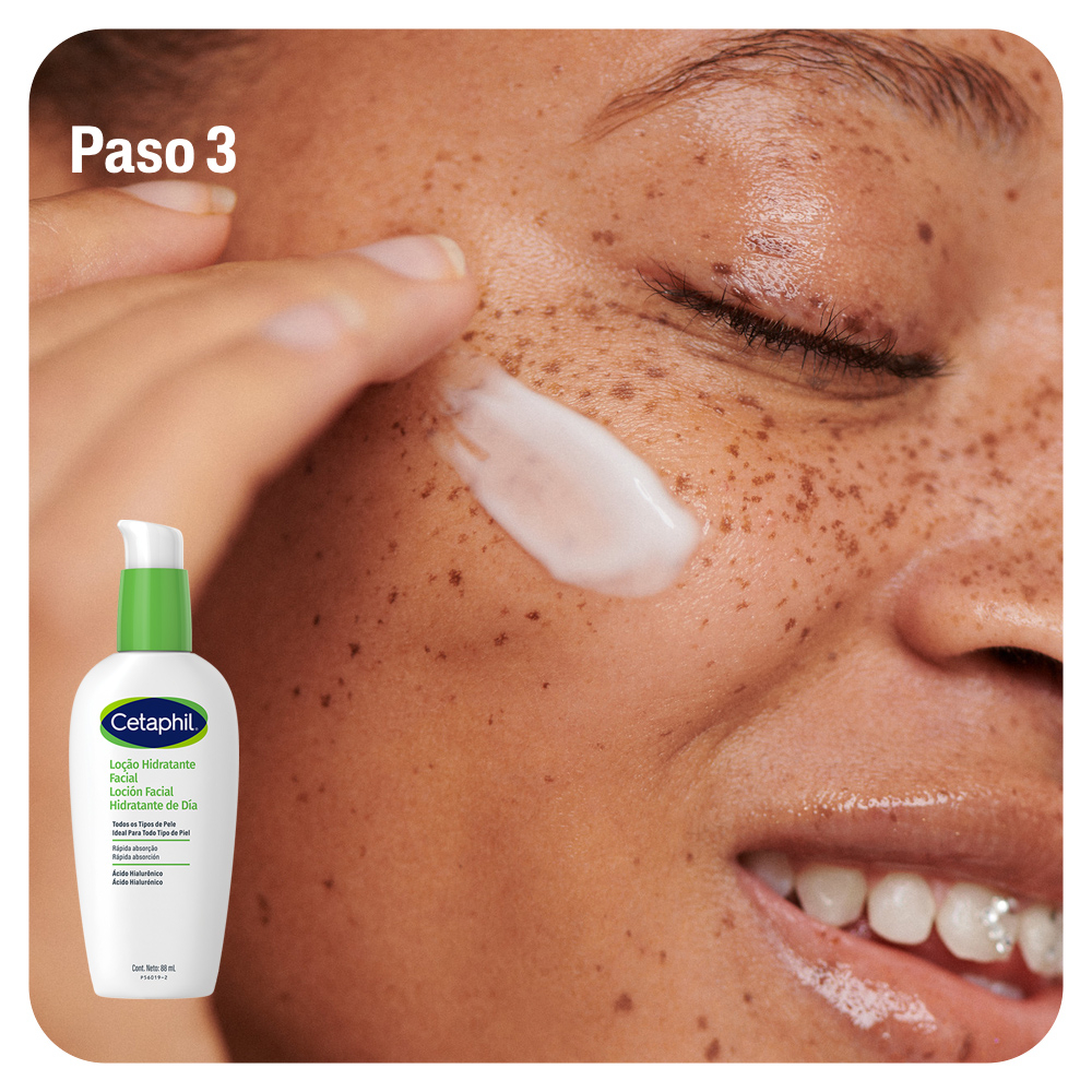 3) Aplicar la loción hidratante de día por la mañana, luego de la limpieza y la aplicación del serum